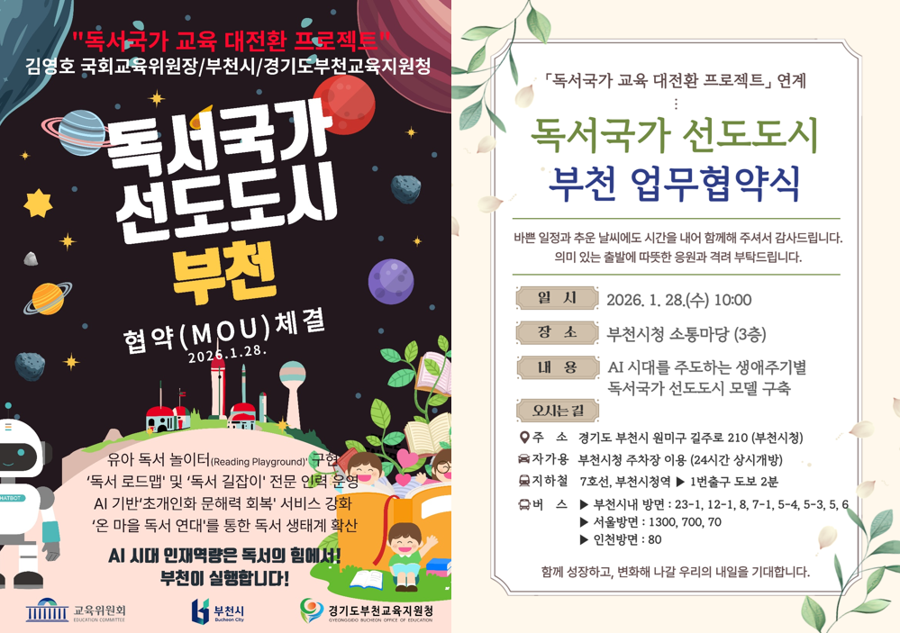 「독서국가 선도도시 부천 업무협약식」에 시민 여러분을 초대합니다 ^^