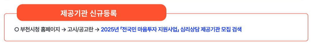 2025년 전국민 마음투자 지원사업 관내 제공기관(21개소)
