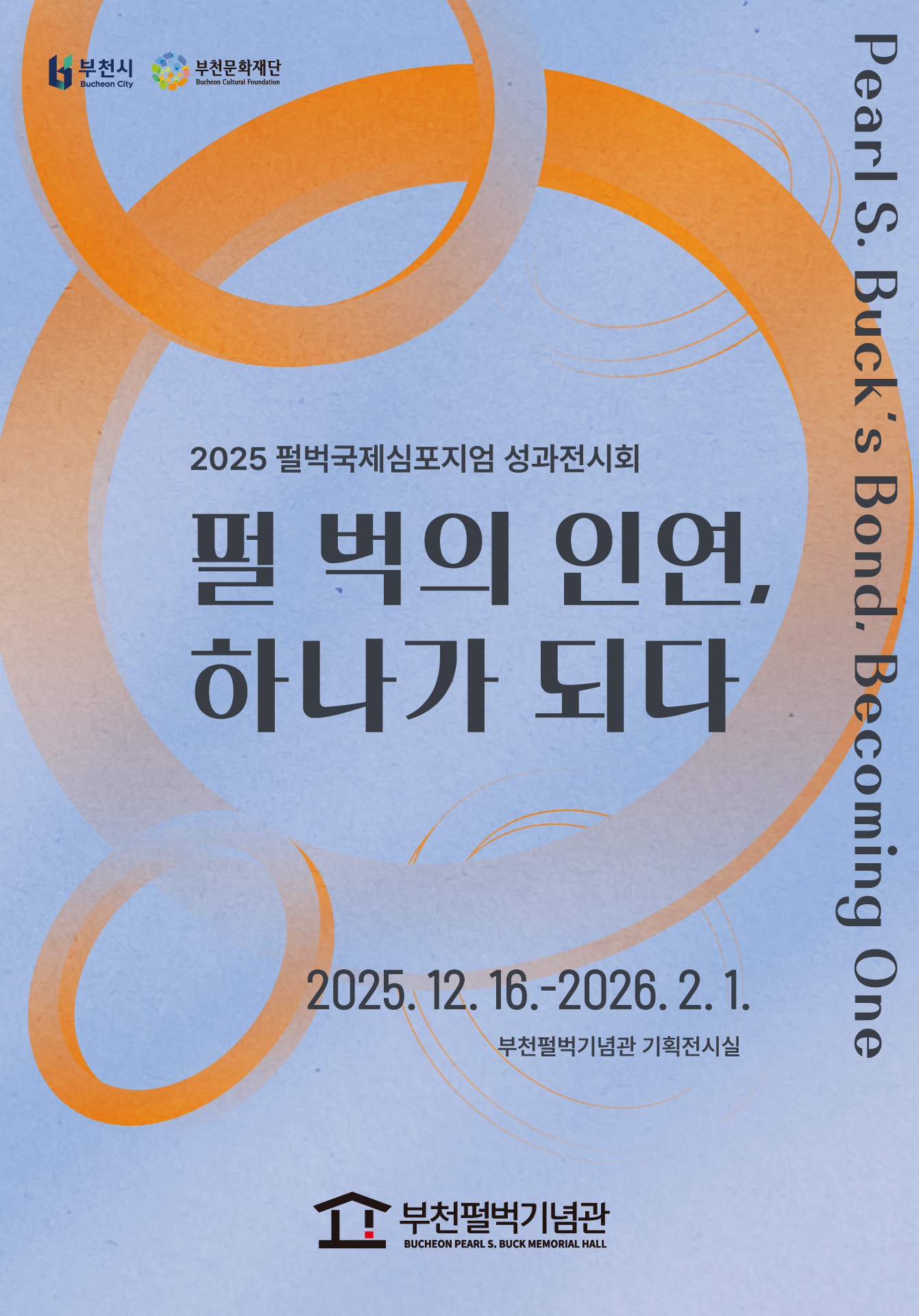 ○ 전 시 명 : 2025 펄벅국제심포지엄 성과전 / 펄 벅의 인연, 하나가 되다(Pearl Buck’s Bond, Becoming One) ○ 기 간 : 2025. 12. 16.(화) ~ 2026. 2. 1.(일) ○ 장 소 : 부천펄벅기념관 기획전시실 ○ 관람시간 : 09:30 ~ 18:00 (입장 마감 17:00) / 매주 월요일 휴관 ○ 관 람 료 : 무료 ○ 문 의 : 032-320-6443 ○ 부천시박물관 홈페이지 : www.bcmuseum.or.kr