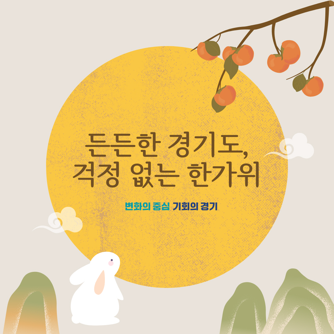 민족의 대명절 추석이 코앞으로 다가왔습니다. 오랜만에 가족들을 만나기 위해 많은 분들이 이동하고, 설레는 마음으로 명절을 준비하는 시기인데요. 경기도가 도민 모두가 편안하고 안전한 추석 연휴를 보낼 수 있도록 10월 3일부터 9일까지 7일간 ‘추석명절 종합대책’을 실시합니다. 이번 종합대책은 총 4개 분야에 걸쳐 19개의 세부 대책을 포함하고 있어, 연휴 기간 발생할 수 있는 다양한 상황에 촘촘하게 대비하고 있습니다. 도민의 풍성하고 편안한 추석 연휴를 위해 어떤 대책들이 마련되었는지 카드뉴스를 통해 자세히 알아보겠습니다.