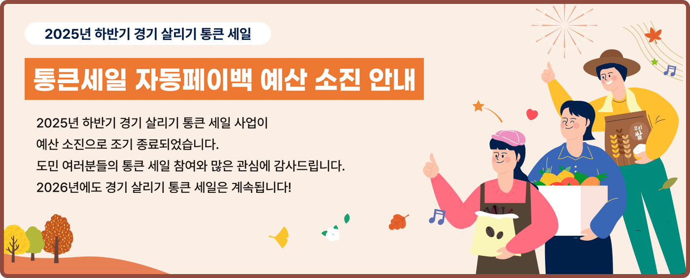 지역경제 활성화를 위한 2025년 하반기 <경기 살리기 통큰 세일>이 개최되오니 시민 여러분의 많은 관심과 참여 부탁드립니다.
